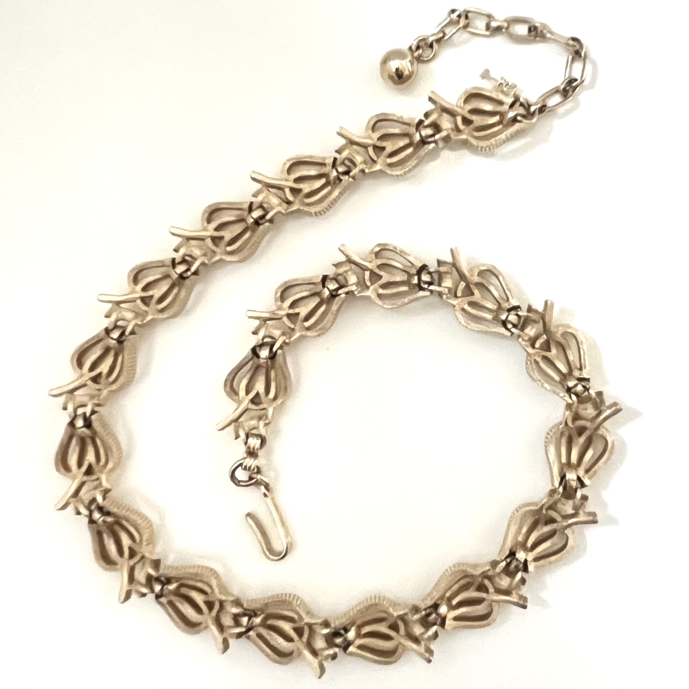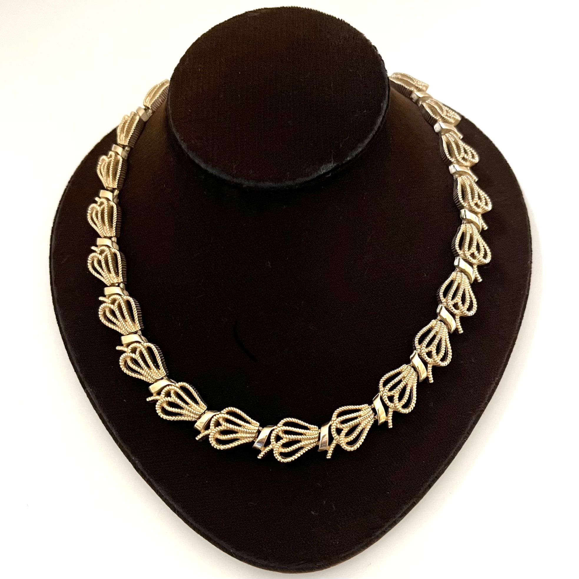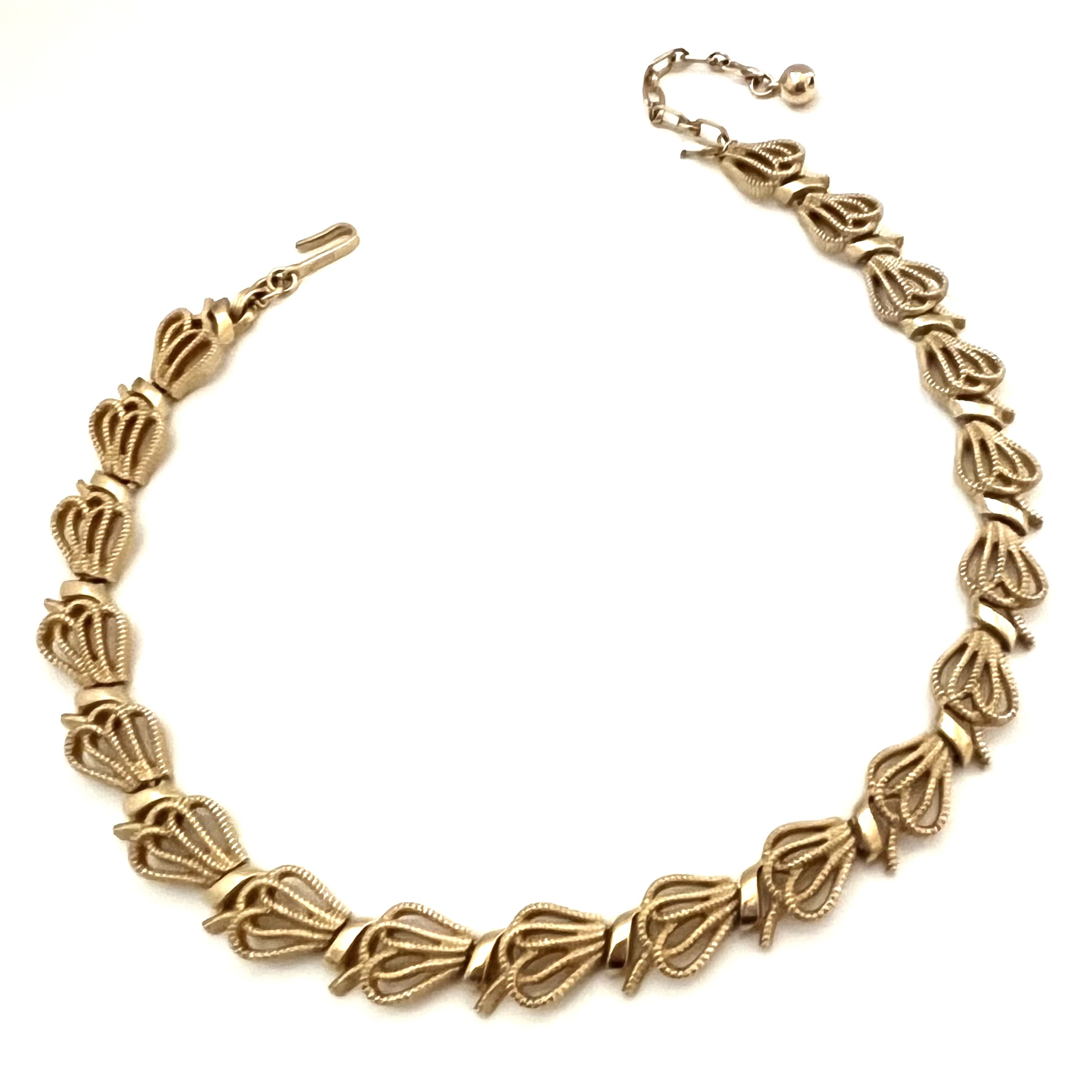 Apartes Collier aus goldfarbenem Metall mit feiner Oberflächenstruktur von Trifari USA. Guter Originalzustand