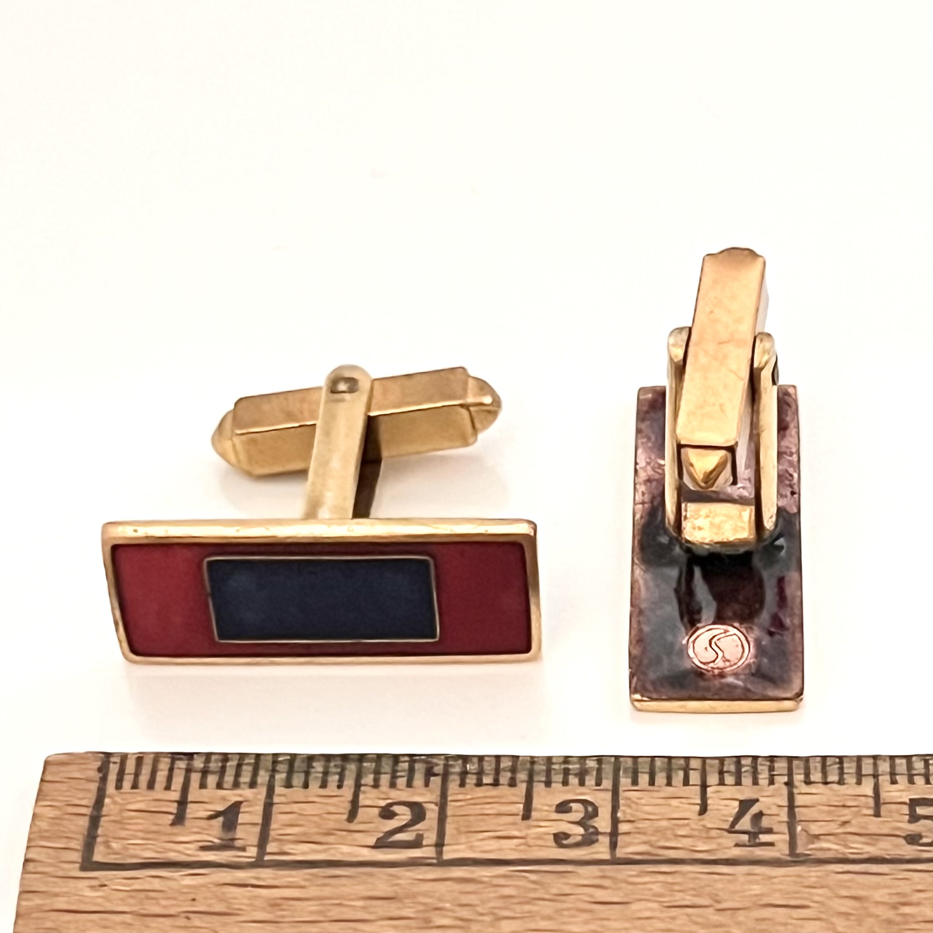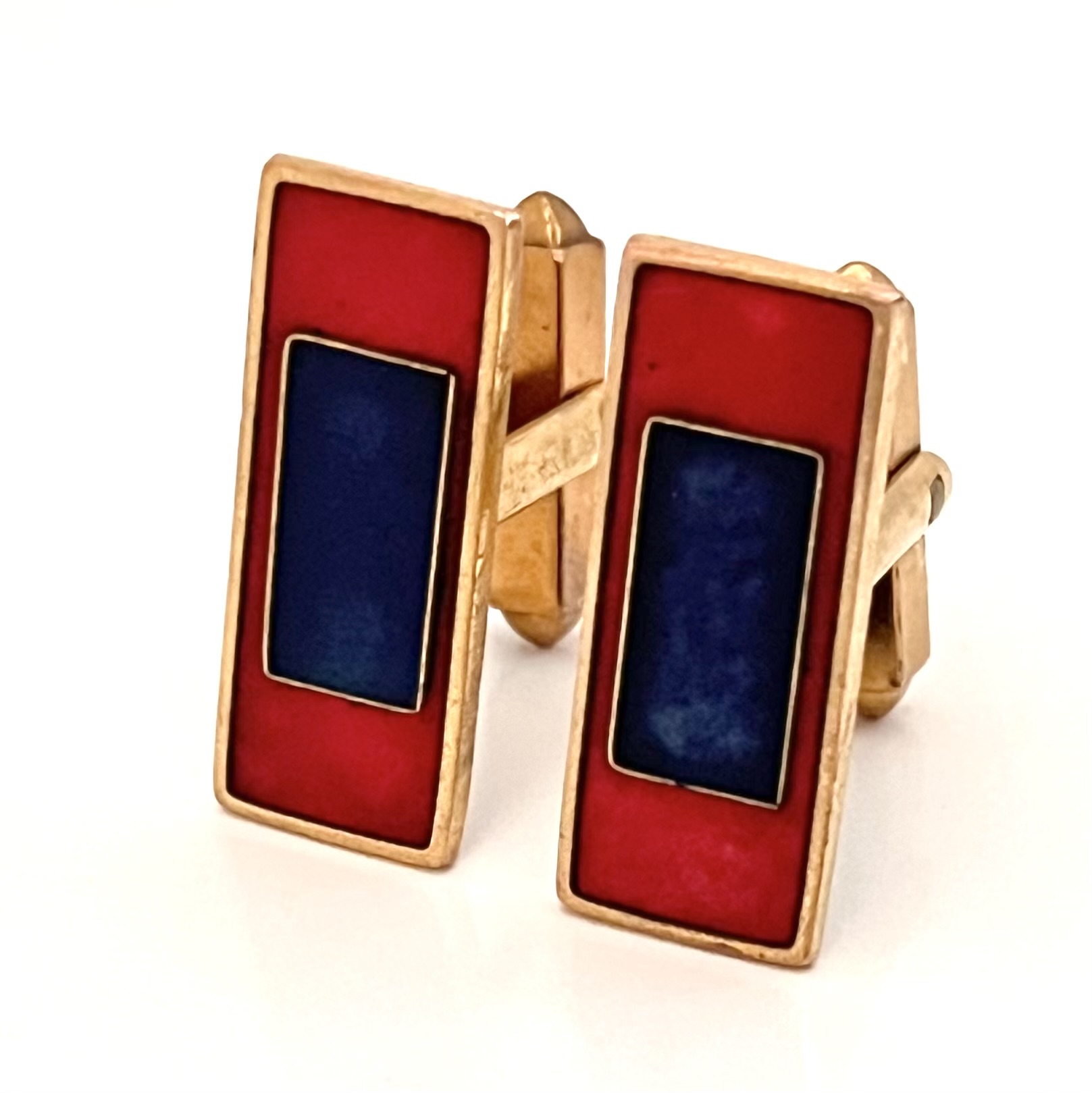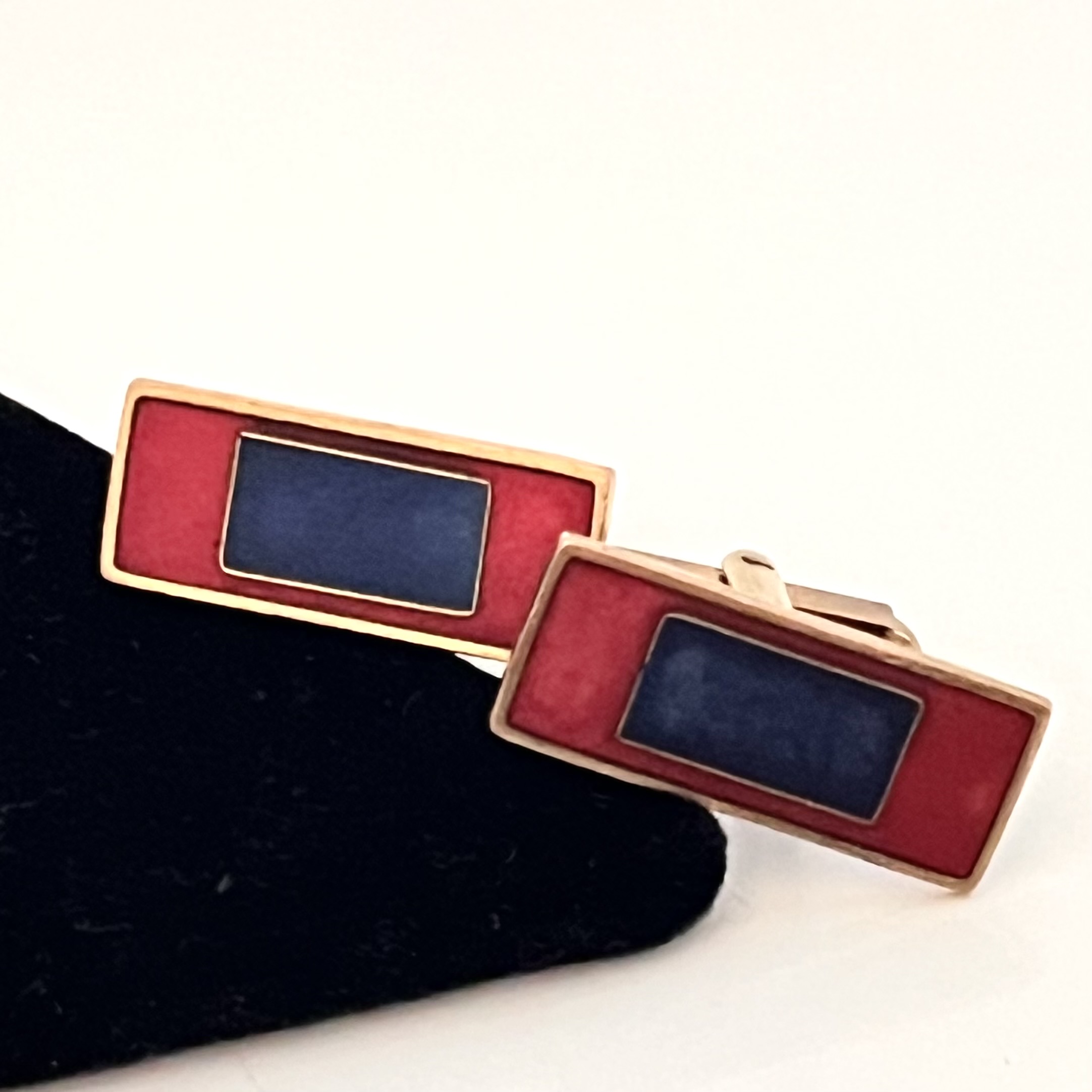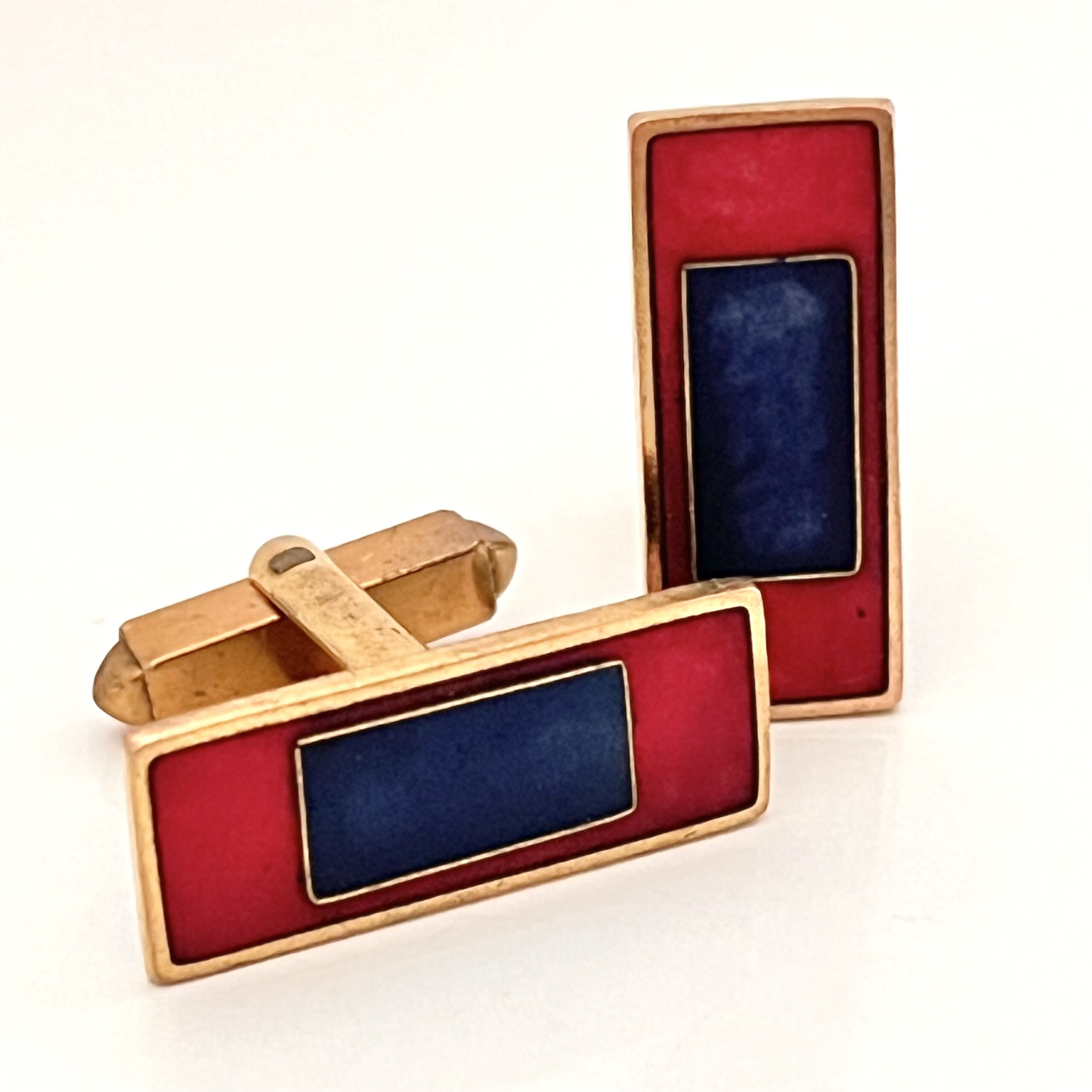 Rot und blau emaillierte Manschettenknöpfe von Scholz und Lammel. Mid Century Design.