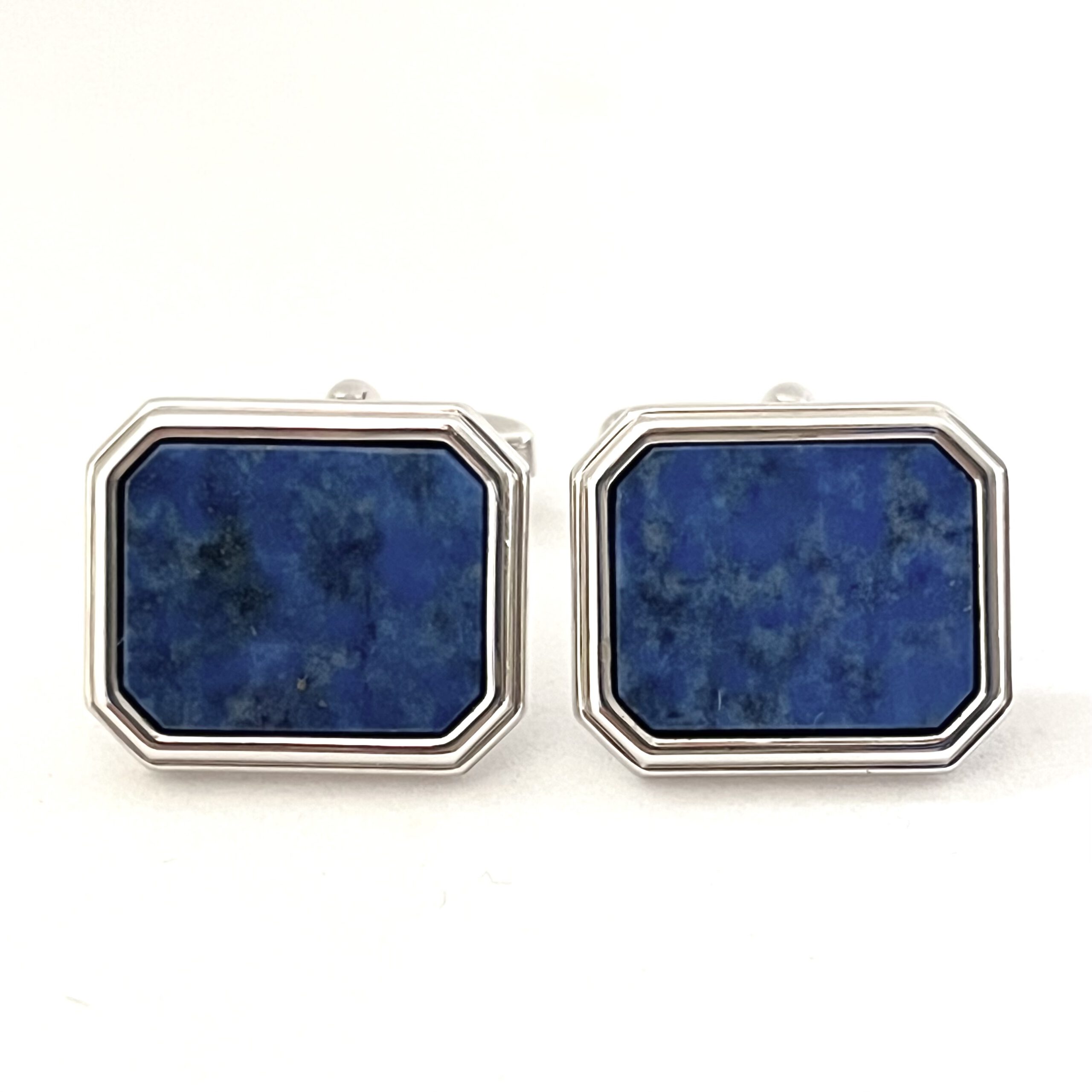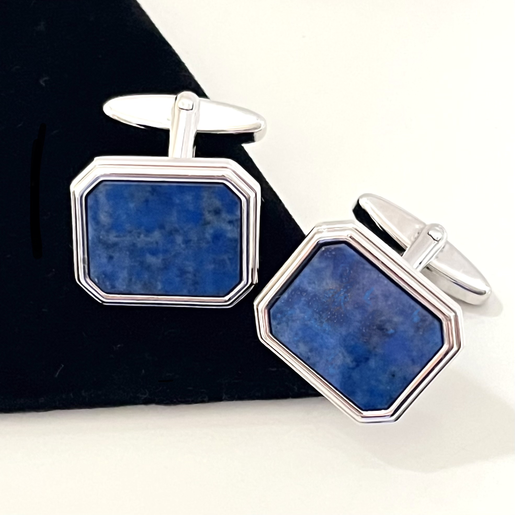 Elegante Art Deco Manschettenknöpfe aus 835er Silber mit blauem Steinbesatz. Das Silber ist rhodiniert. Sehr guter Originalzustand. Silberstempel 835 im innern des Steges.