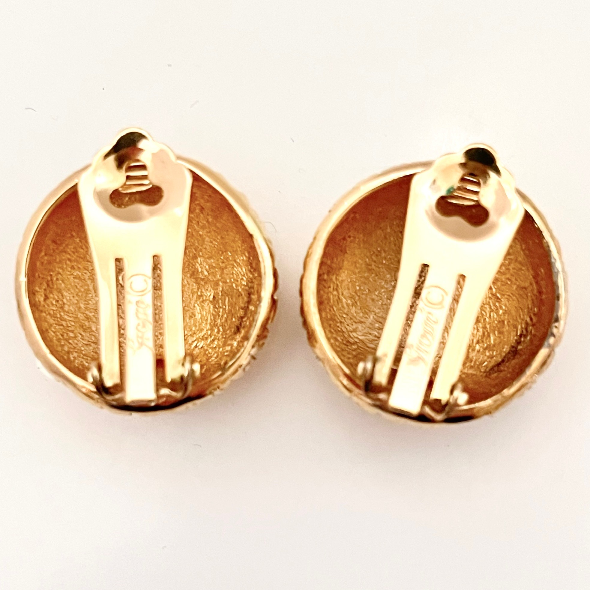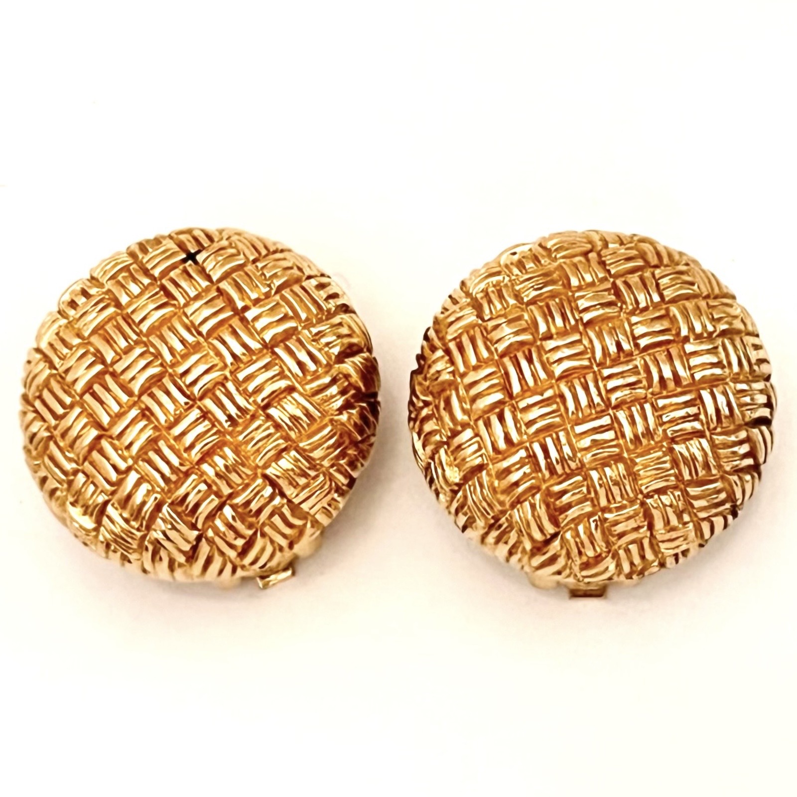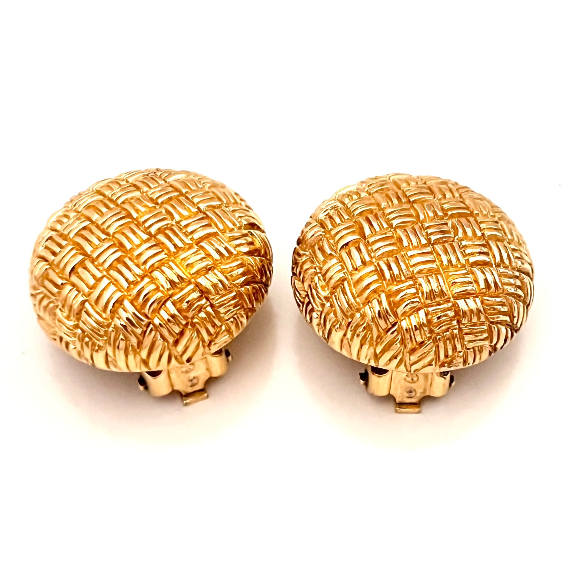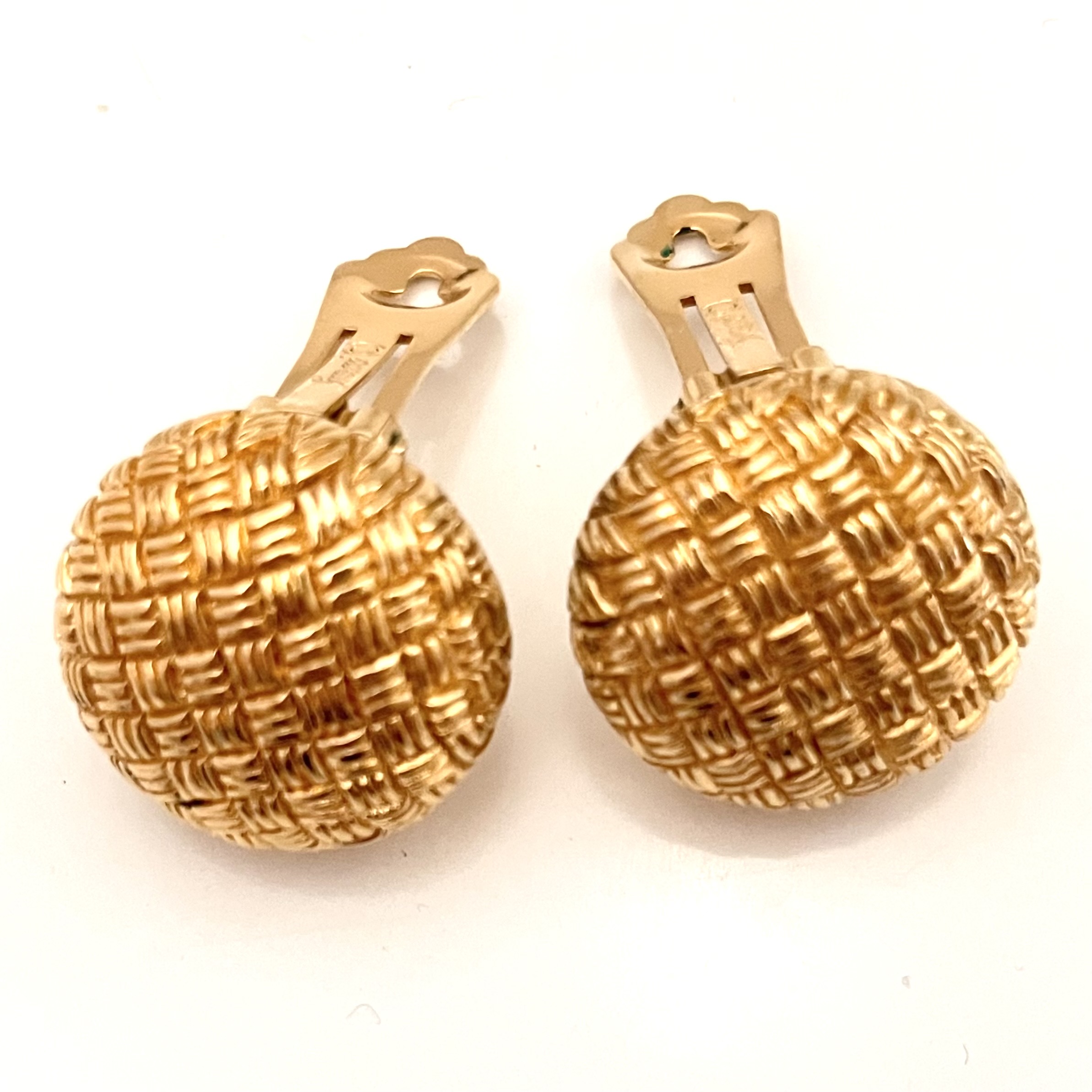 Klassisch schöne Ohrclips von der Firma Grossé, Germany. Goldfarbene Metallelemente mit feiner Oberflächenstruktur. Firmensignatur auf dem Clip. Guter Erhaltungszustand.