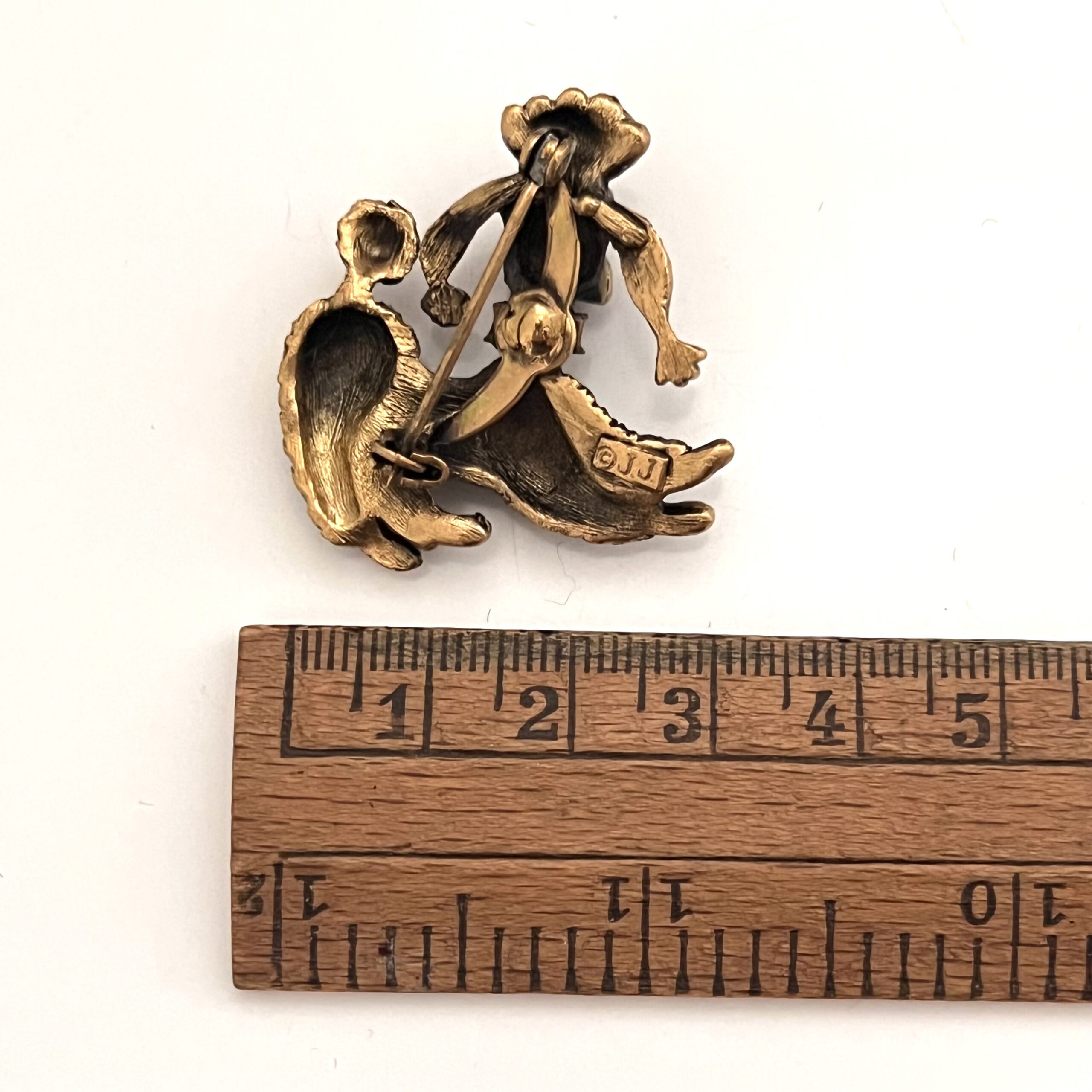 Kuriose lustige Pudelbrosche von der amerikanischen Firma JJ. Sicherheitsverschluß.