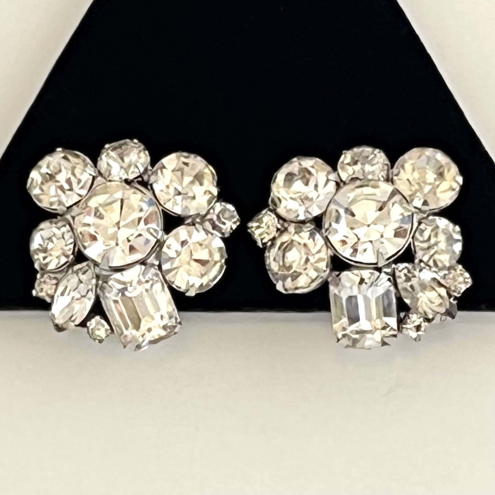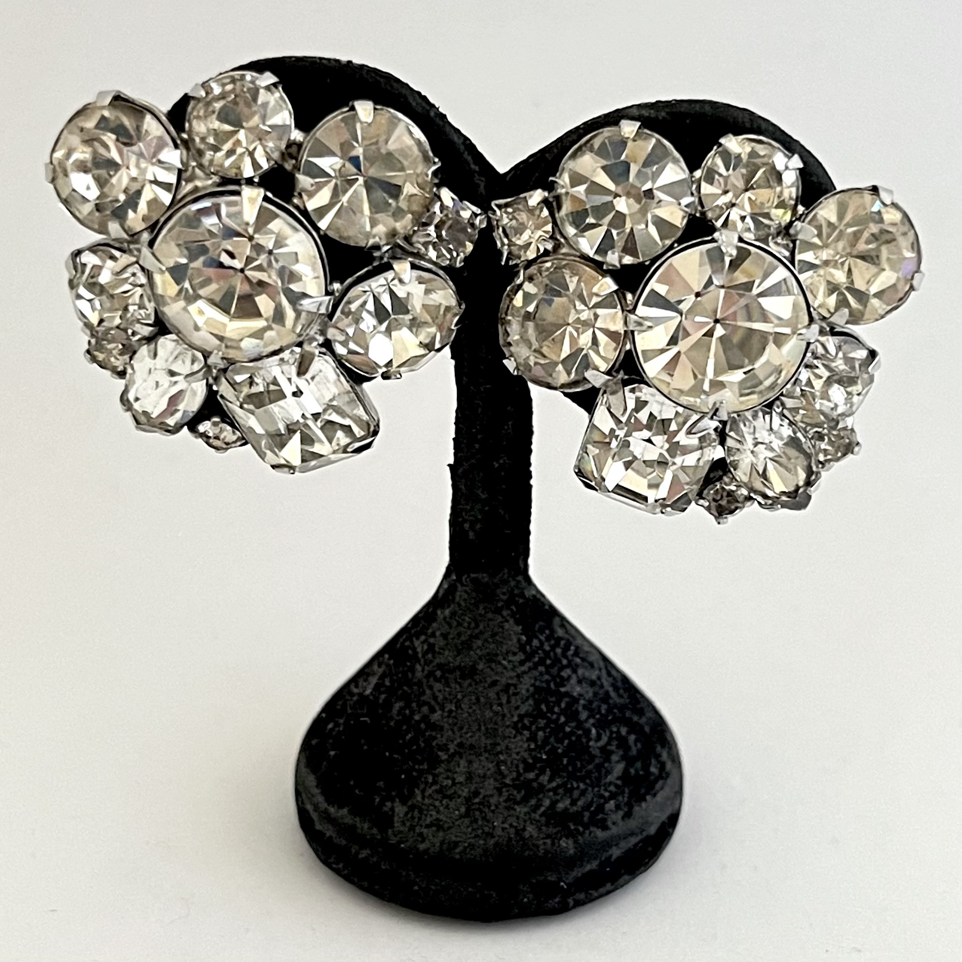 Kristallfunkelnde Ohrclips von Kramer New York aus den 1950er/60er Jahren.