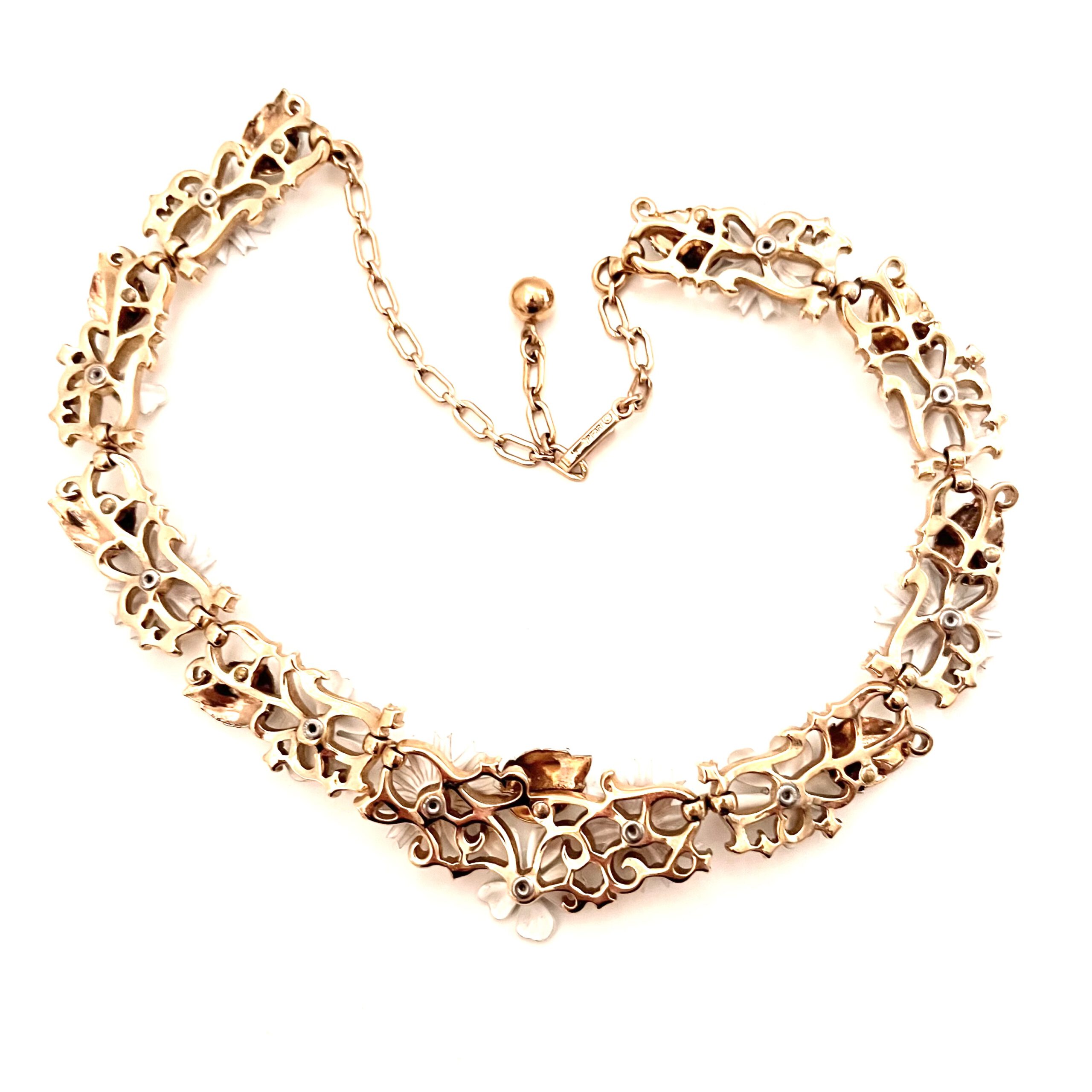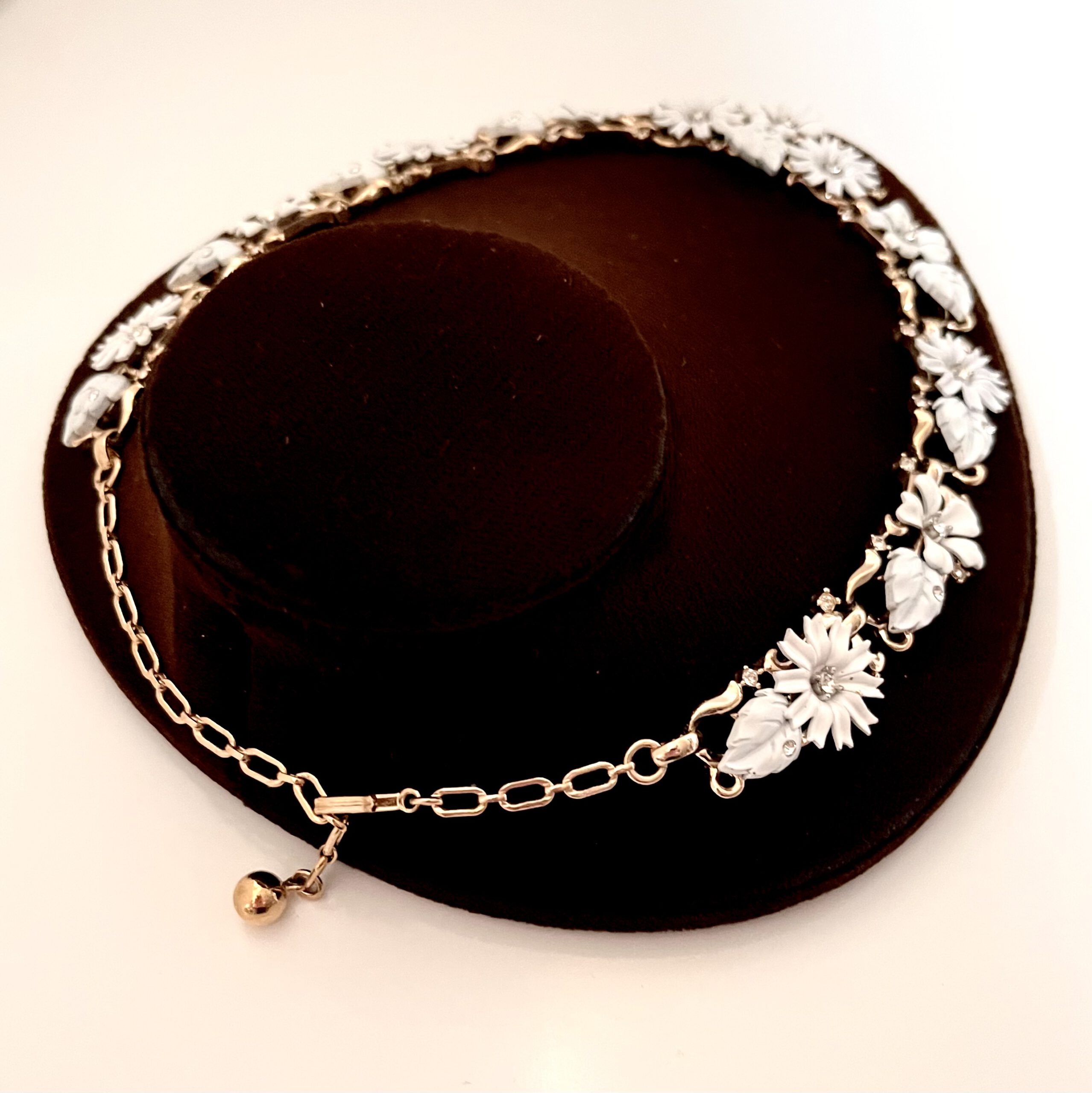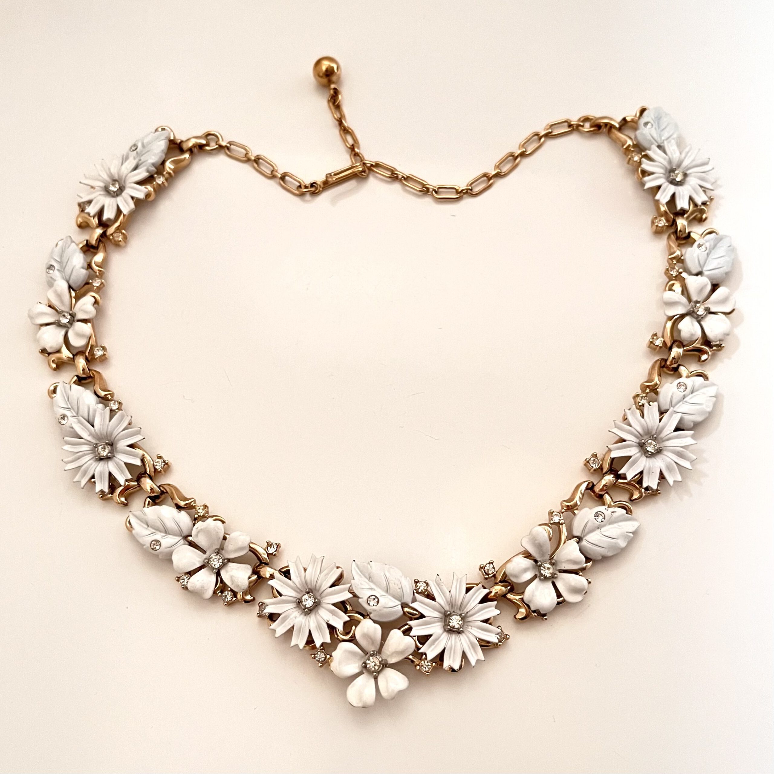 Wundervolles Wildblumencollier von der amerikanischen Firma Trifari aus den 1950er Jahren. Sehr schöner Entwurf mit dezenten Strassdetails.